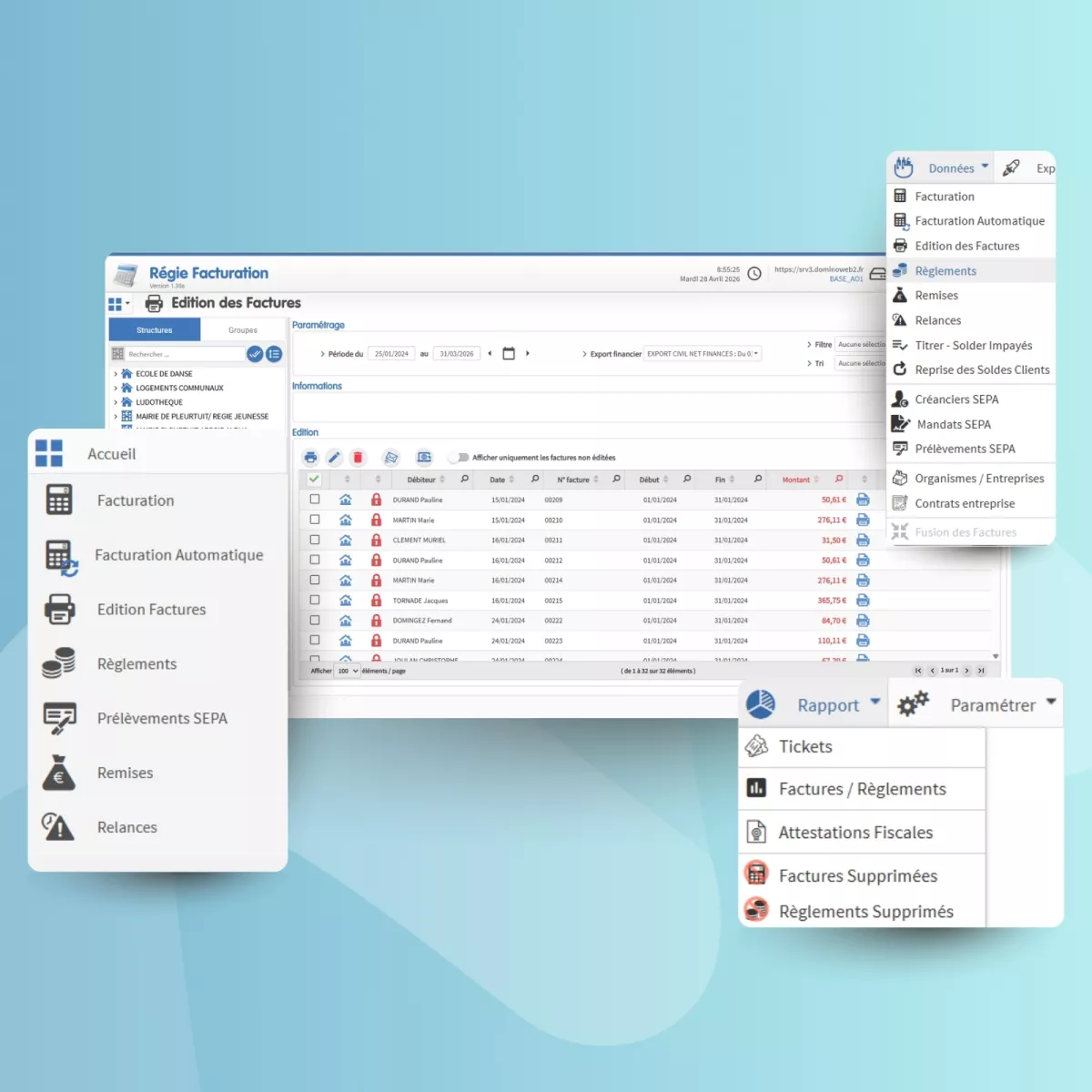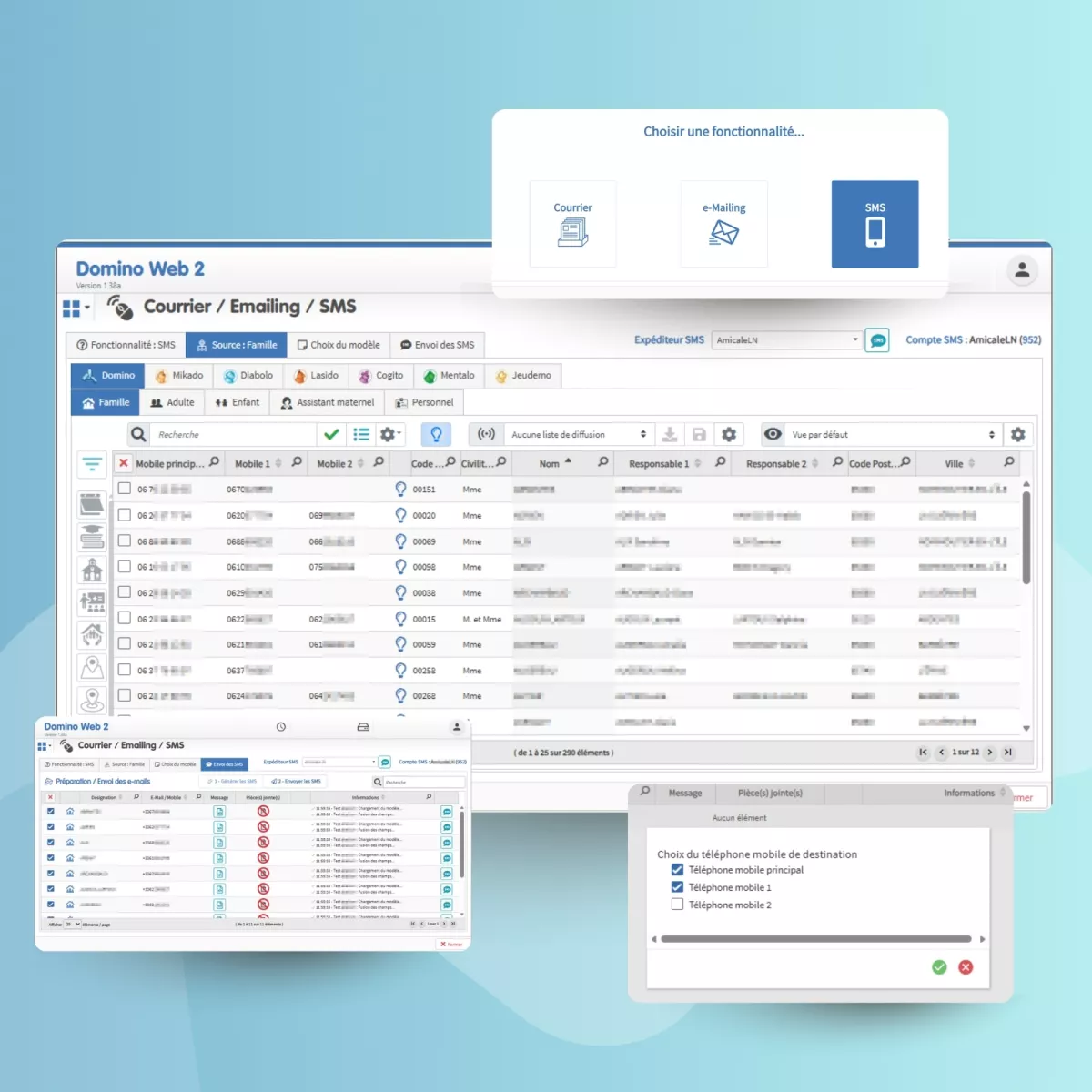 Familea repose sur Domino Web, une base de données unique qui centralise tous les dossiers familles et enfants. Les logiciels métiers s'y connectent directement : une information saisie une seule fois est disponible partout, en temps réel, sans ressaisie.