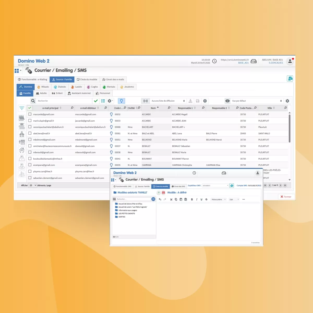 Familea repose sur Domino Web, une base de données unique qui centralise tous les dossiers familles et usagers. Les logiciels métiers s'y connectent directement : une information saisie une seule fois est disponible partout, en temps réel, sans ressaisie.