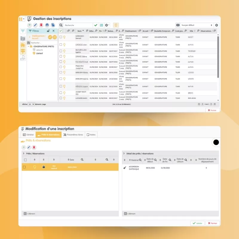 - Réservations et prêts en ligne par les abonnés depuis le Portail Familles (desktop, tablette, smartphone)