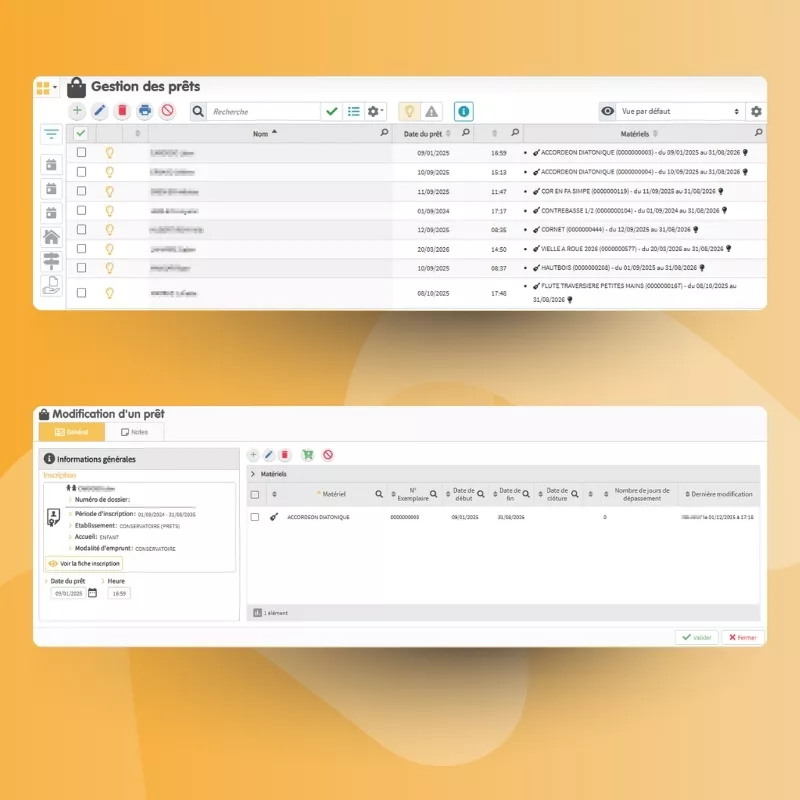 - Planning des prêts et réservations avec vue d'ensemble sur les retours attendus