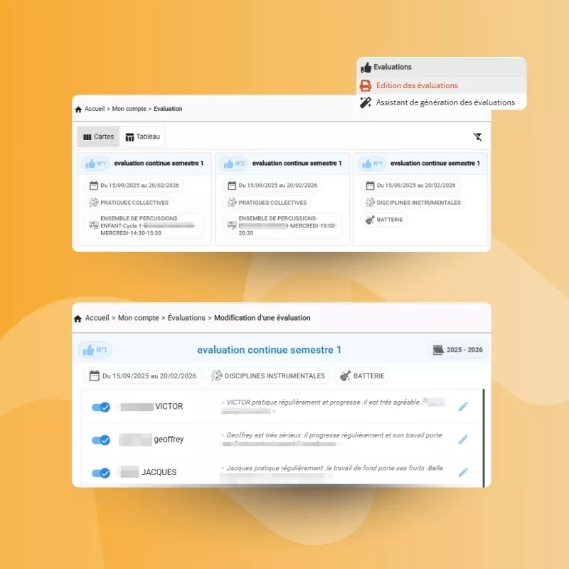 - Édition des bulletins d'évaluation prêts à remettre aux familles